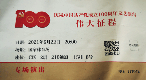 6月22日晚,李德发应邀在北京鸟巢现场观看庆祝中国共产党成立100周年大型文艺演出《伟大征程》。《伟大征程》生动展现中国共产党百年来带领中国人民进行革命、建设、改革的壮美画卷,表达了对中国共产党百年华诞的深情祝福,也给我上了一堂生动的党史学习教育课,进而对党的“初心使命”有了更深刻的感知,对我们党执政“最大底气”有了更深切的感悟,更加坚定了我感党恩、听党话、跟党走的信念。衷心祝福祖国繁荣昌盛,祝党的100周年生日快乐!